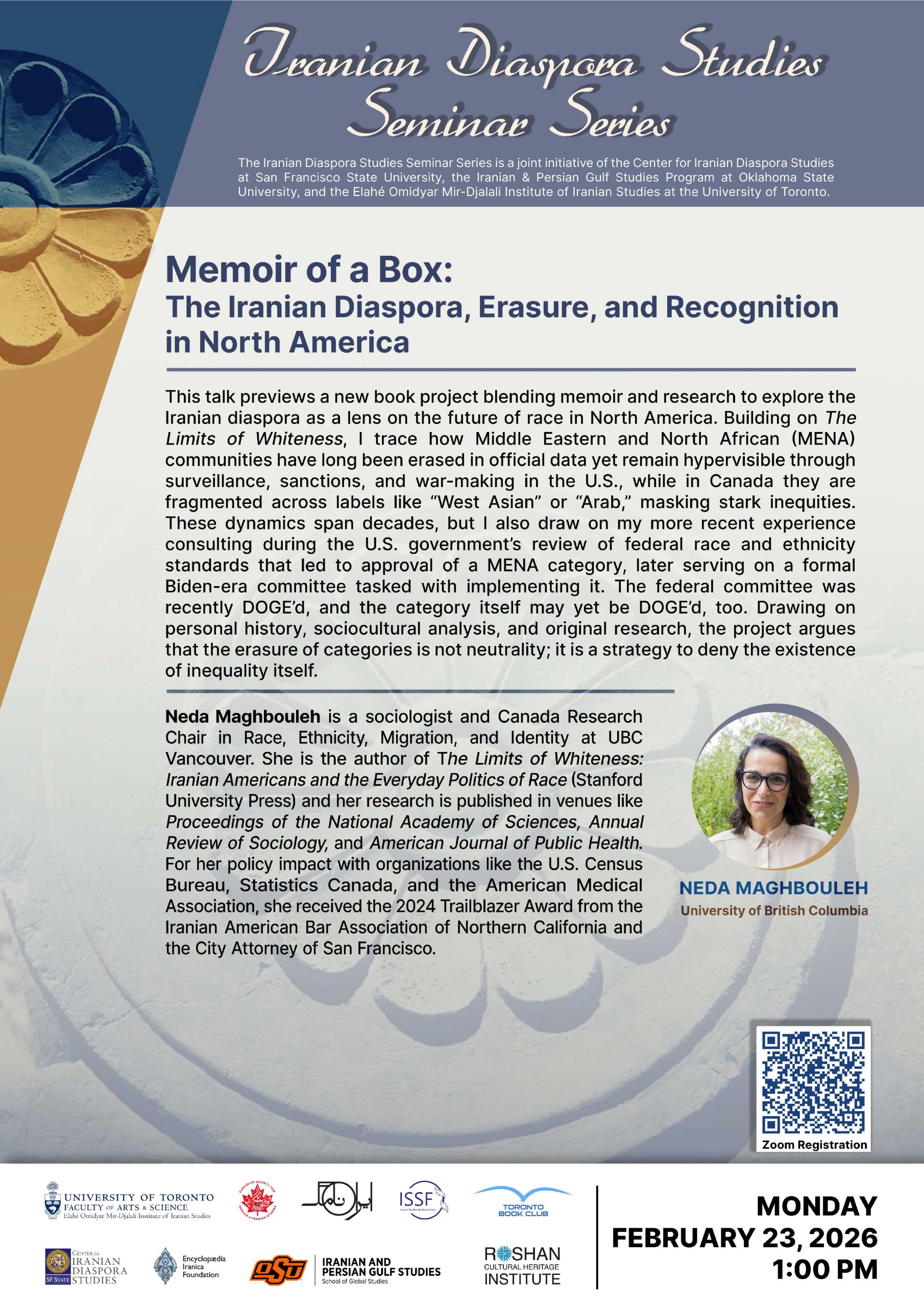The Elahé Omidyar Mir-Djalali Institute of Iranian Studiesin collaboration with theCenter for Iranian Diaspora Studies, San Francisco State University and theIranian & Persian Gulf Studies Program, Oklahoma State University jointly present